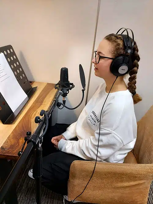 Interaktīva ekskursija pa studijām, iepazīšanās ar balss aktiera profesiju un dažādiem balss pārraides veidiem.Stāstījums par skaņu, tās daudzveidību, lekcija par runas paņēmieniem, pareizajām elpošanas metodēm, runas tempa regulēšanu un eksperta padomi par elpošanas izmantošanu cīņā pret satraukumu. Dienas notikums ir multfilmu ierunāšanas sesija studijā.